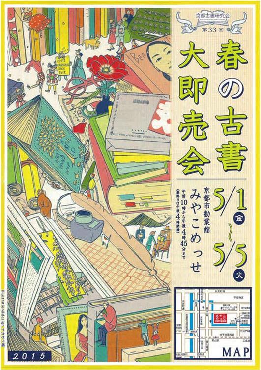 位于京都中京区高仓通夷川上的京都古书籍商业协同组合会馆,即京都的古书商同业会办公处,已有九十余年历史。共一百一十余家会员,经常活动的旧书店老铺之外,还有古董商、古美术商等等。常年发行古书综合目录、古书店绘图,举办古书即卖会,是京都文化界不可忽视的存在。2015年1月末2月初,这里首次举行了初春古本祭