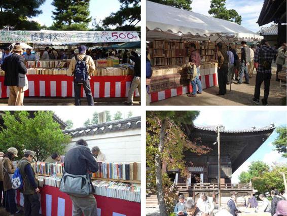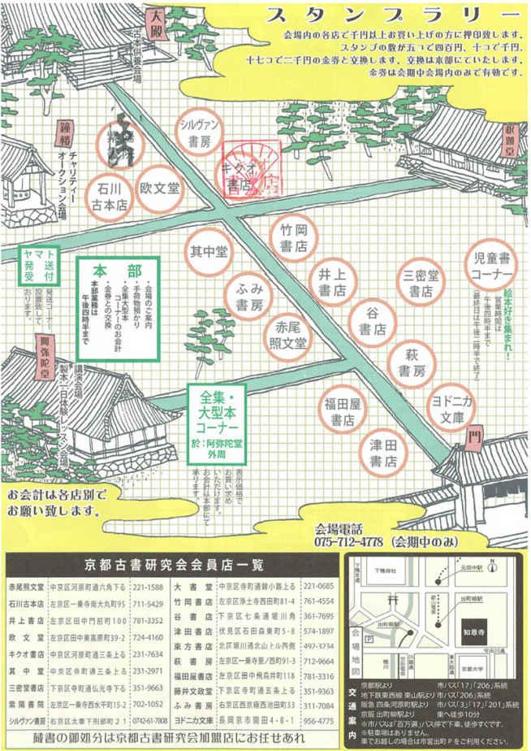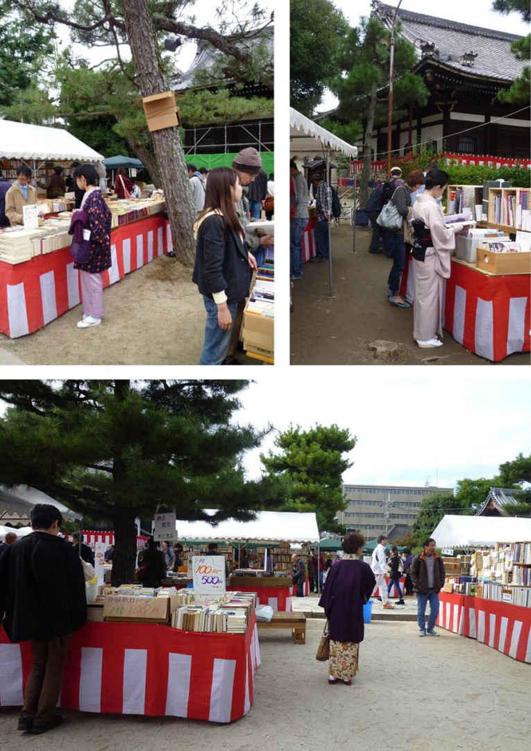 秋天这场参与的旧书店只有十六家左右,书籍册数约在二十万上下,较之春夏两场规模要小。然而质量却丝毫不逊。店主们摆出的图书或大大低于平时的定价,或是平日不轻易示人的珍本秘本。加上独有的古本供养和拍卖会,以及紧邻京都大学等原因,热闹程度自然非比寻常。