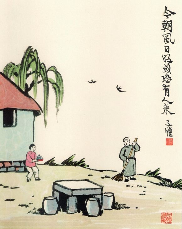 竹篱之内的院子,薄薄的泥层下面尽是岩石,只能种些番茄、蚕豆、芭蕉之类,却不能种树木。竹篱之外,坡岩起伏,尽是荒郊。因此这小屋赤裸裸的,孤零零的,毫无依蔽;远远望来,正像一个亭子。我长年坐守其中,就好比一个亭长。这地点离街约有里许,小径迂回,不易寻找,来客极稀,杜诗“幽栖地僻经过少”一句,这室可以受之无愧。风雨之日,泥泞载途,狗也懒得走过,环境荒凉更甚。这些日子的岑寂的滋味,至今回想还觉得可怕。