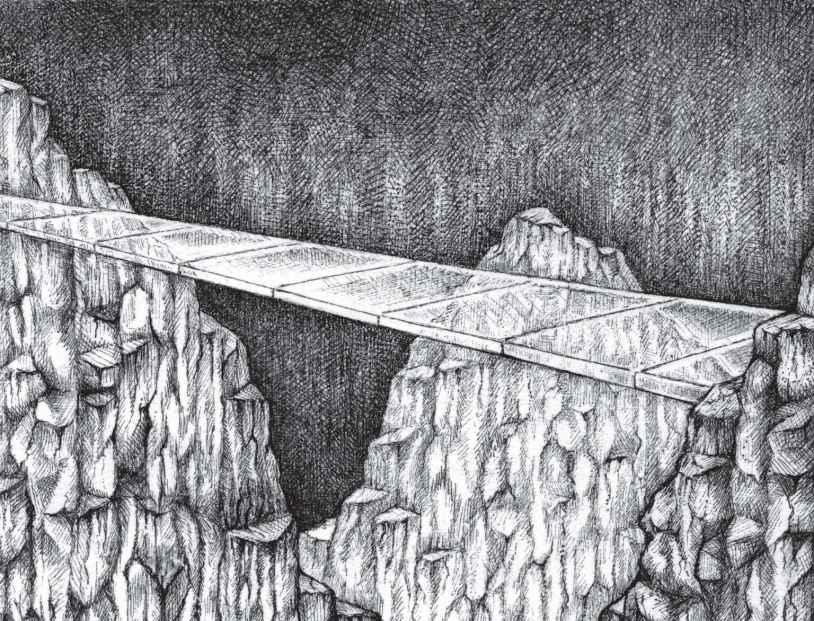 由透明的桥我联想到现在流行的全透明玻璃幕墙高层建筑群。虽然映照出天空,显得十分夺目耀眼,但是听说不断有小鸟撞死在上面。好像是由于小鸟把玻璃幕墙误认为是延绵的天空。桥也是一样的。我对小鸟的不幸深表同情。