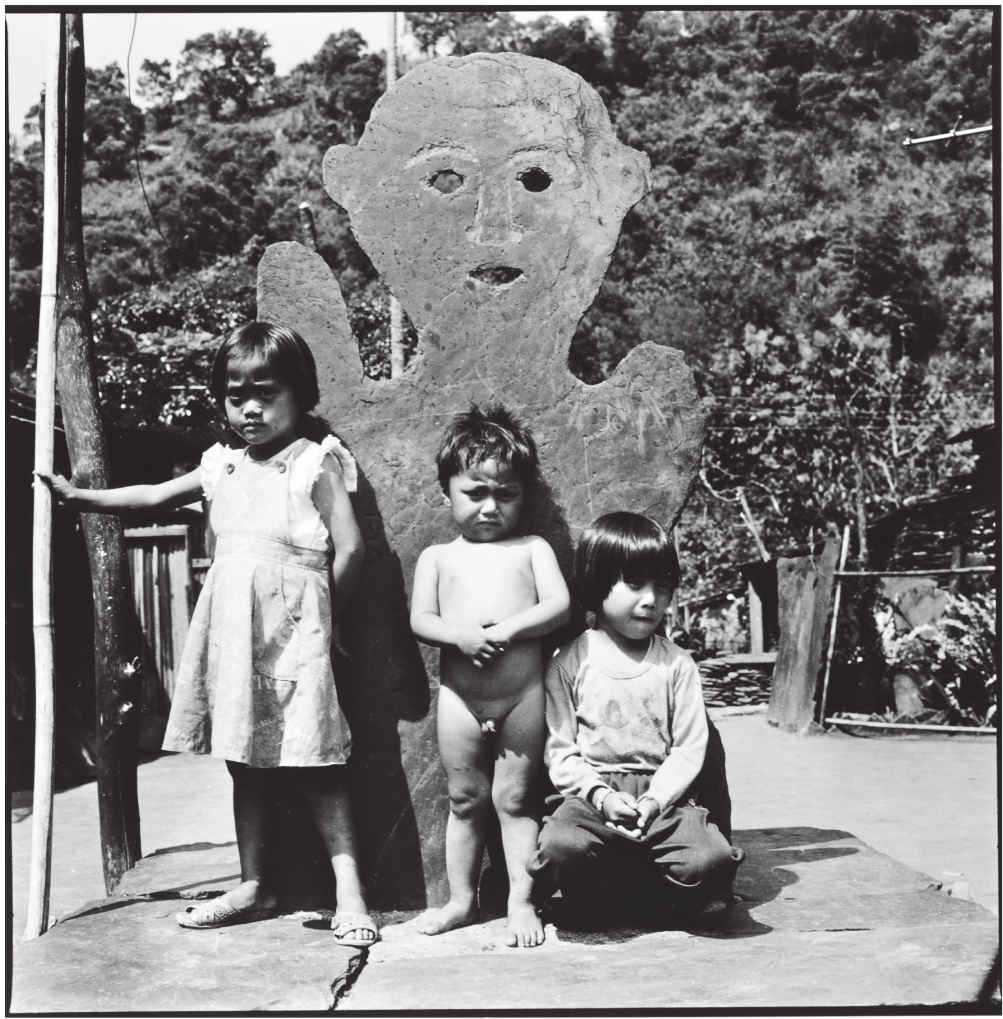 这三个鲁凯人小孩本来在村中广场玩耍,应我的要求,来到石像图腾边留影。大概是从没拍过照,也不知道相片是什么,见我拿120相机对着他们,竟然呆了,好像我手中的方盒内藏着一只凶猛的动物。小姐姐扶着竹竿的模样,简直就像撑着一支长矛。
