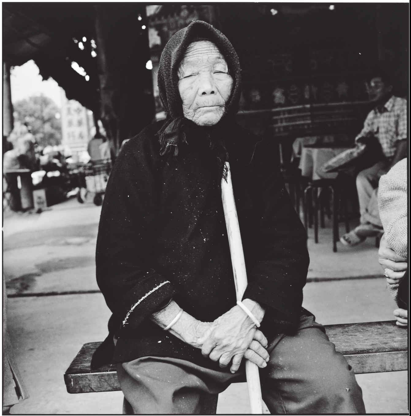 这是个很穷的乡下,但她的衣服跟裤子都很新,料子也很好,显然是当地的好人家。右手腕的金镯子紧箍,看来是当年出嫁时,按年轻纤细的手臂打造的。左手腕的玉镯就比较松了,戴上时应该年岁已大,说不定还是儿女孝敬的。为丈夫、家庭、子孙辛苦付出一辈子,终于能过上悠闲日子了。