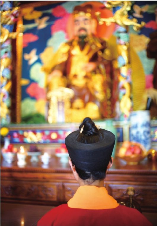 昨晚睡得很晚,为了今早冠巾的事,师父们都在用心地替我备这个那个。此刻想来,那时候如静坐在深深画堂,眼前一切都是和自己相关的,自己却又插不上手。傍晚的时候,伍师爷、杨师父、马师兄就过来了,帮忙准备坛场。糖果是早早就供好了的,殿堂每个祖师前,斋堂灶神爷前,都要上供,其余还有桂圆、红枣等,晚间我收拾完下楼,看见师父还在殿堂摆放东西。鼓、铛子、铰子、木鱼、二星、引磬,法器样样都摆好了,文疏盘子里放了三个文疏,旁边有一个圆瓷盘,里面有一把红色的木梳,是为我绾头发用的,师父说是从任师父那里拿来的,还是新的梳子。