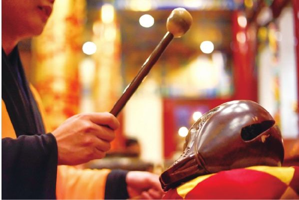 门口贴有公告,已经是很久以前的事了,大约是说由于山体滑坡,寺庙遭到毁坏,中元节不做法会,对于平日里来上香的居士也不再提供斋饭。进门后,过道两边堆了许多杂物,然后是高高的台阶,上去后有殿堂,遇到一个年轻的僧人,穿戴很整齐,抄着手,看到我们似乎很意外,见了礼,问我们从哪里来,又客气地留我们用午斋。再往里走又是殿堂,院子里种了日本海棠,开了三两朵花,衬在斑驳的红墙下,令人神思缥缈。在门口遇到一老僧,戴着绒帽,着对门襟衣衫,彼此行了礼。老僧说也到过我们常住的道场,只是去的是附近的佛寺,未曾到道观。磕头的时候,老师父一手敲木鱼一手打鼓,口中念着长串的佛号,声如洪钟,给我们留下极深的印象。