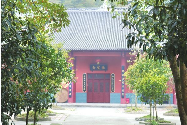 往里走才发现阳平观的气派。一座高塔耸立在眼前,看着还是崭新的,分了好几层,挂着“全真宗门”“正一宗门”等牌匾。塔周围种了许多柏树,还很低矮,每棵树前有个小牌子,上面写了善信的名字,这才知道,道观里大多数树木都是善心捐资种的。看到此景,想起彭椿仙师爷。听师父们讲,当年师爷发动老百姓种树,有居士要来供养他,他就让那人去种棵树,后来慢慢有了这样的气候。“前人栽树,后人乘凉”,我们承的都是前辈的福。