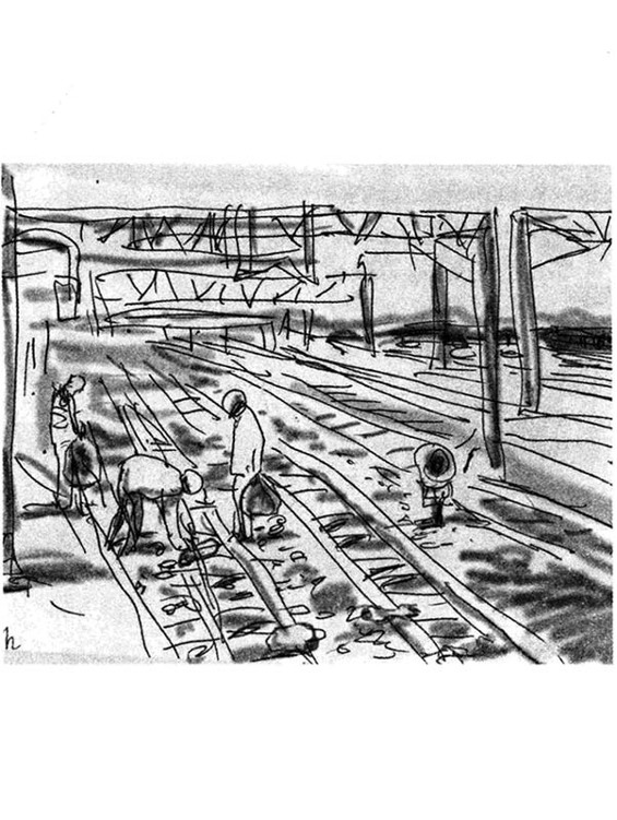 我抬头看到的第一眼是约莫十公尺外一只穿着黑色军用胶鞋的脚,脚踝以上不见了,只剩一些碎烂的皮肉,它的另一侧则是一只手臂,手掌不见了,扭曲得像刚拧干的衣服一般搁在铁轨旁。