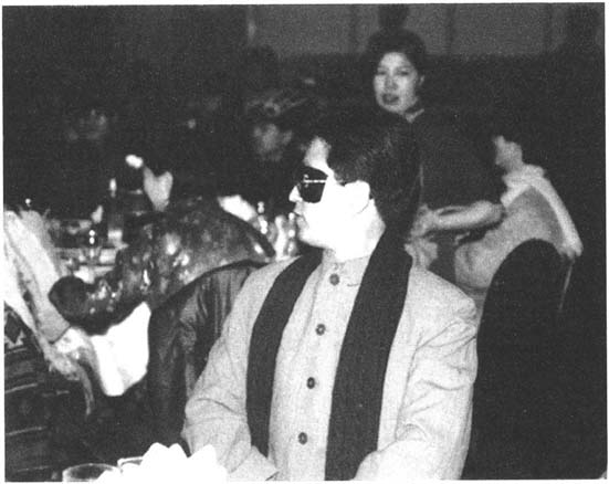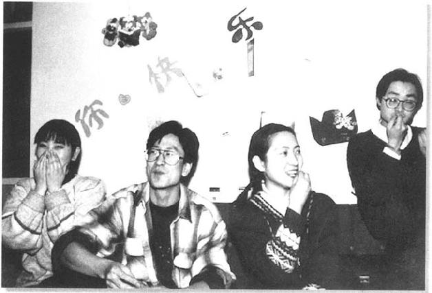 为了让部里近80%流浪北京的职工能以栏目为家,每年春节之前都会来一次大型的联欢,在联欢上,领导是我们攻击的靶子,他们连怨言都不许有,照片上的我装扮成一个“五四”青年,而身后都是乔装打扮后的同事。