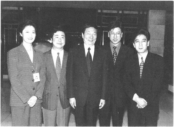 朱镕基总理来台里视察,临走时我邀请他和我们几位主持人一起合影,总理欣然答应,然后我对他说:您是我们这儿好多女编导的偶像,总理笑了。