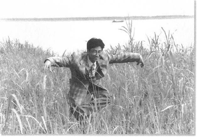 在美丽的大自然中,人也时常露出动物性。比如这张照片上的我,是不是在冒充仙鹤呢?可是如果在人群中做此造型,该被人骂“有病”吧!