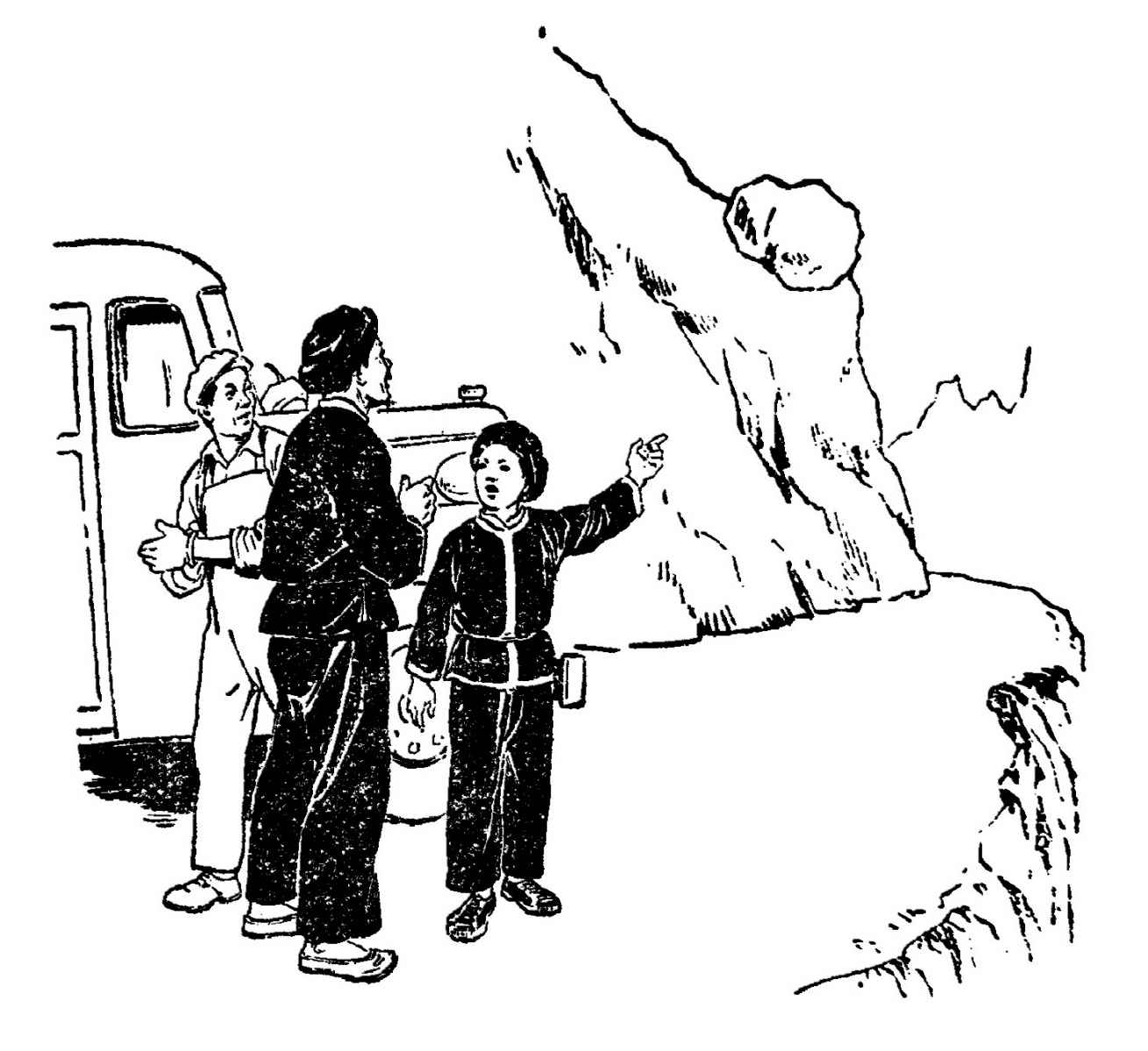 小蒙戛还记得很清楚,半年前个金公路全程通车的那一天,上万人到了金屏县城里,他和爸爸妈妈姐姐一家子都去了。各村各寨的人差不多都拥来了,最远的从九十里外的勐喇坝赶来。公路两边站满花簇簇的一大群,苗家姐姐穿着新绣的花裙,普米族姑娘满头都戴着鲜花,哈尼族阿姨的银饰那天特别亮,傣族姐姐们的短上衣也特别白净,瑶族男娃娃总是穿着一身黑,可是胸前密密的两排银纽扣也够威武的。那天大家都穿上新衣,像过一个大节日。小蒙戛骑在爸爸身上挺得高高的,只看见二十辆十个大轮子的大卡车装满了食盐、布匹、农具和轧花机,还有许许多多的日用品。那一天红河哈尼族自治区的各族人民吹着芦笙,敲着象脚鼓,向筑路的大军、路工们献了三十面各族人民五色的锦旗,感谢大军、路工同志们的辛劳,感谢共产党给我们边地老百姓带来这许多好东西。小蒙戛真想到汽车上去坐一坐,可是爸爸拉着他不让去,小蒙戛只用小手摸了摸轮胎,那轮胎就有他一人高啊!
