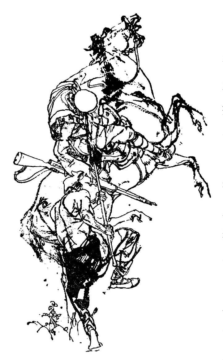这小家伙,非常大胆、机灵,像猴子似的攀山越岭跑得飞快。我紧紧跟着他。这时候,枪声越来越近了,也越来越激烈了,还不时地听到子弹在空中嘤嘤地飞过,还隐隐地听到了人喊马嘶的喧闹声……