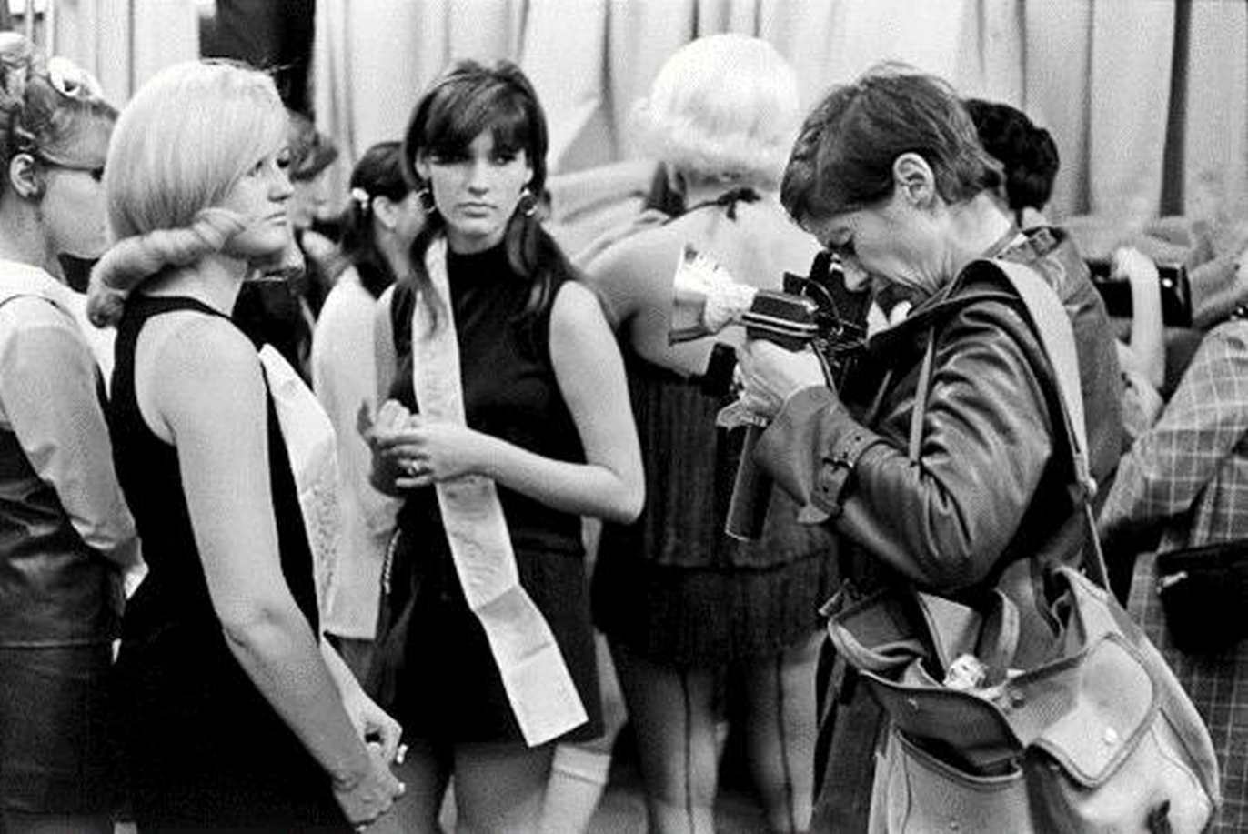 阿勃丝的这种工作方式恰巧在威廉·格德林(William Gedney)1969年的胶片中得以保存[12]。当年阿勃丝四十六岁,她正在拍摄一些选美女王;而格德林在她们情愿或不情愿转身的过程中捕捉到此幕,也就成为一幅阿勃丝的照片。1960年,阿勃丝第一次拍摄选美女王,“那些可怜的女孩为了努力展现自己,看起来筋疲力尽,而导致她们不断地犯下致命错误的实际上也是她们自己”。在一个令人印象深刻的叠加折射中,格德林拍到她们出现在阿勃丝的镜头里,同时她也出现在他的镜头里。(9)