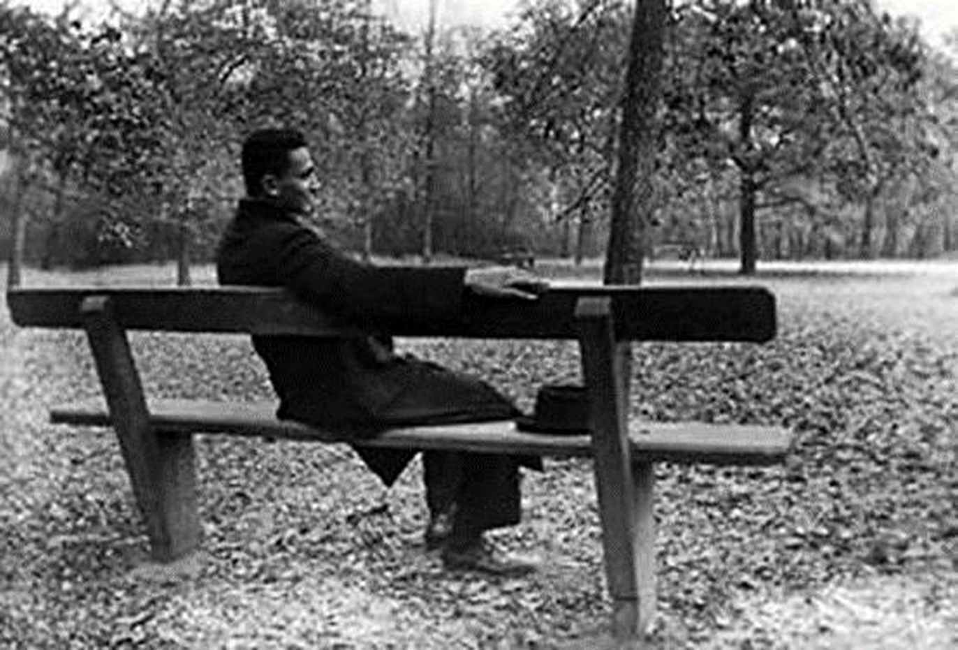如果声称在柯特兹作品中的侧面像总是面向或渴望死亡就太过了。比较合理的说法是他们总对长凳抱有戒心,而长凳代表着某种死亡。一条长凳是……坐冷板凳:置身事外,或是被迫身处外围,持观望态度。长凳上的男性是柯特兹自身境况的代理人,旁观生活却不参与其中。尽管如此,像布拉塞和维吉镜头下的人物——他——至少还有一张长凳。1962年9月20日,在长期受到冷落和怠慢后,柯特兹在纽约拍下的一张照片完美地总结了其自身境况,或演绎了对其境况的看法[34]。