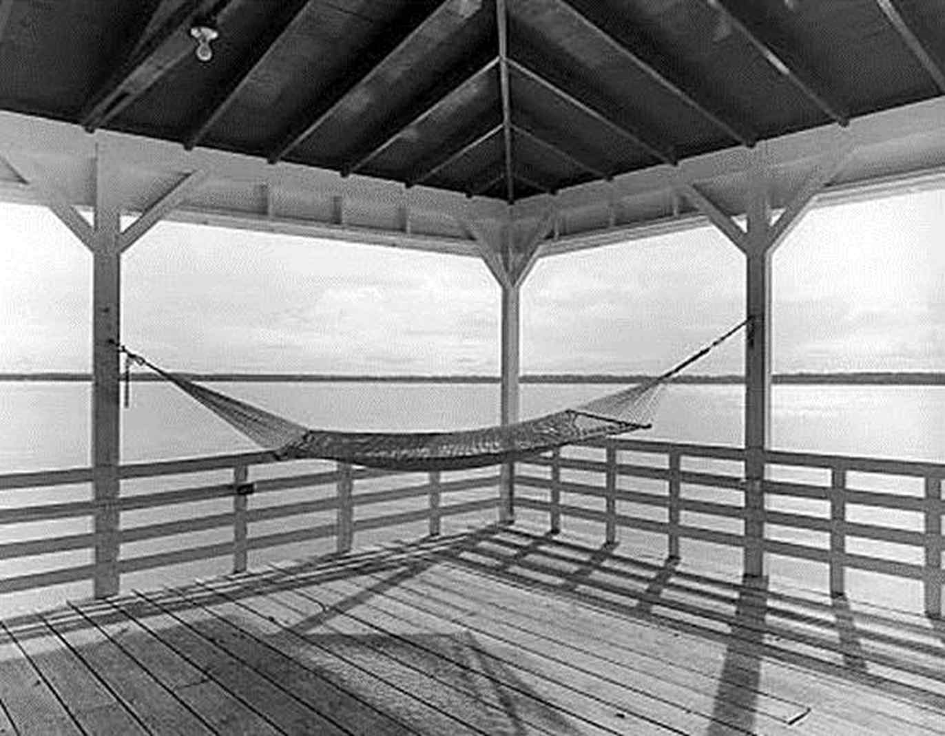 埃格尔斯顿在1971年拍摄了波纹屋顶和蓝天的彩照,被两个褪色的招牌所隔开:一个是“可口可乐”,另一个是桃色的桃(PEACHES)字母。在1981年,埃格尔斯顿的南部同乡杰克·李拍摄了货车停车场的黑白照。画面中出现了各种招牌:包括可口可乐,在一辆皮卡的后面有桃子的广告牌。几年后他拍摄了桌子上的一碗水果。我一直倾心于李的作品,但直到我看到这两张照片才明白我倾心的原因所在。简单总结如下:斯特兰德、埃文斯、弗兰克、卡蒂埃·布列松、兰格和韦斯顿的最著名的作品是他们看到和拍摄的黑白世界。他们不约而同地认为那些以彩色来呈现眼中黑白世界的摄影师前景暗淡(用斯特兰德的话说就是着色)。然后出现了埃格尔斯顿、梅罗维茨和肖尔他们,以色彩看待和拍摄这个世界。另一方面,李却是难得的现象:一个摄影师以色彩看待世界,而以黑白记录愿景。这就宛如以彩色胶片曝光,然后以黑白洗印,但在完成之后(常在报纸杂志中),这样的照片总有着明显的失落感和近似感,就好像我们在看一个劣质的复制品。然而李的照片没有减弱的感觉,其拍摄对象呼喊着“看色彩”。如果如萨考斯基所说,埃格尔斯顿开始“将蓝色和天空视为一体”,李似乎决意要将灰色和天空也看作一物。这在他的1993年作品《吊床》中最为明显[59]。灰蓝色的天空与太阳下是蓝绿色的大海,在森林投下金色的影子。所有这些呈现为黑白色。周遭空无一人——很难想象有人躺在吊床上。除了色彩外,无物可看——实际上也没有色彩。强烈的缺失感显然来自无人的吊床,但这是一个象征,实际上是无形的缺席:色彩的缺乏使黑白更鲜明地被感知。可能这就是为什么一个图像既可以给予满足也可以表达渴望。