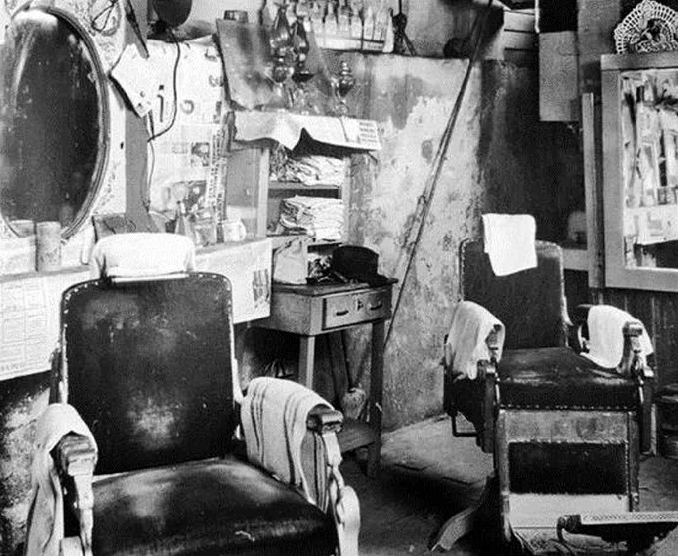 埃文斯拍摄于1933年的照片亲切地逐项记录了每日丰富的活动和摄影的资源:理发师,顾客,等待的人群,旋转椅和镜子——在某面镜中,我们看到手提照相机的“悔过的密探”。他是照片中唯一不在室内的人员,也是唯一不参与理发事务的人员,他既不是顾客,也不是理发师。同样可以理解,他是照片中唯一头戴礼帽的人员。在斯蒂格里茨的 《统舱》和海因的盲乞丐照中,意大利市场有个戴礼帽勘查现场的人:代表着摄影师的超然投射。这一次,摄影师本人现身,利用镜头查看,通过其礼帽而得以辨认(也使他匿名)。