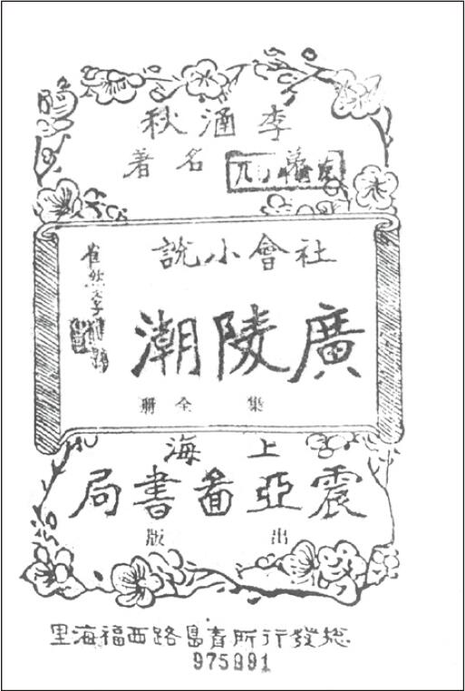涵秋之以小说成名,固植基于幼年耽嗜稗官家言,而以《儒林外史》的讽世对其影响更大。至于其走上写作道路,那是和他作客鄂渚有关。其时,汉口《公论新报》,主笔政的贵州人宦屏凤,提倡风雅,于报上特辟一栏《汉上消闲录》,广征诗文,一些知名之士,如金煦生、包柚斧、胡石庵、凤竹荪等,经常撰稿刊载该栏。涵秋看了很是欣羡,也把他的近作《感怀诗》四首投去,屏凤为之激赏,并致书约他一叙,从此汉上文学界都知道了涵秋其人,他并和金煦生、包柚斧订了金兰之契。既而屏凤发起举行诗选,以白桃花为题,评定甲乙,涵秋名列第一,声誉更盛。当时胡石庵兼撰小说,词藻华丽,各报竞载,涵秋又很欣羡,便试作《双花记》,然不敢自信,秘不公开。恰巧上海《时报》征求小说稿,他赶撰五万言的《雌堞影》,但恐贸然寄去,徒充字篓,正犹豫不决间,适包柚斧往访,因谈及此稿,包谓:“投稿非熟稔编辑不可,我和该报主办人狄平子有旧,而编辑陈景韩、包天笑亦我素交,我可为之介绍。”涵秋即以是稿授之,及刊出,却署包柚斧名,涵秋与之交涉,卒由柚斧款以盛宴,向之道歉始已。此后该书印成单行本,才改署涵秋,外界不知底蕴的,尚误以为柚斧乃涵秋化名,岂知截然为两人。柚斧名安保,董玉书的《芜城怀旧录》,即有一文记柚斧事。《雌堞影》既受读者欢迎,涵秋的自信心也就坚定了,便把秘诸笥箧的《双花记》,给《公论新报》发表,排日登载,登完,再撰《瑶瑟夫人》,一时刊物编者纷纷向他约稿。他为《中西报》写《琵琶怨》,为《鄂报》写《双鹃血》,为《商报》写《滑稽魂》,为《趣报》写《并头莲》,为《楚报》写《姊妹花骨》,为《扬子江报》写《梨云劫》等,既而各报先后停刊,惟《公论》和《中西报》未停,涵秋续撰《过渡镜》及短篇《珍珠囊》《奇童案》《丐界之四杰》等。辛亥革命,两报也结束,《过渡镜》成为未完稿,急欲博取稿费,乃托友赴沪之便,把《过渡镜》求售于商务印书馆之《小说月报》社,《月报》编辑为王蕴章,别署西神残客,擅词章之学,这时的文风,崇尚雕镂组绣的文言作品,所谓“鸳鸯蝴蝶派”,动辄以骈俪出之,而涵秋的《过渡镜》,为白话体,不入主编之目,被摈未取。迨民国三年,钱芥尘任《大共和日报》经理,征求社会长篇白话小说,涵秋以《过渡镜》应征,芥尘审阅一过,甚为惬意,便刊于报的副刊上,易名《广陵潮》,涵秋之名大震于沪上,被称之为海内第一流大小说家。《广陵潮》登毕,印成单行本,再版了多次,直至近岁,《中国通俗文艺》还刊布一部分,并有再印全书之计划,可见这书并不以时代的变迁而失去其价值,书中人物,什九真人真事,足资参考。贡少芹为涵秋挚友,自涵秋逝世,他编传记式的《李涵秋》一书,由天忏室出版社出版,天忏为少芹别署,可知是他自编自印的了。少芹曾为《广陵潮》作一索引,书中主人公云麟,即涵秋自己的影子,抬高云麟,即抬高他自己。可是恰如其分,褒中寓贬,是很恰当的。大骂田焕设谋吞并云锦绣货铺的描述,亦即藉此大骂戴进卿占据他家的烟店,何其甫影射他的老师黄世杰;乔家运影射焦倬云,焦为扬州著名的刀笔手,极促狭尖刻;杨靖影射周心如,周工心计,蹂躏乡民,为一恶棍;林雨生影射胡瞿园,胡诬言陷入。涵秋几被所害,故恨之刺骨。其他如鲍桔人影射包柚斧;贾鹏翥影射孙藕青等,均有所指,绘影绘声,胜于禹鼎铸奸,温犀烛怪,因此当时的一班士绅,做有缺德事的,都不敢和涵秋同席,深怕被他写入说部,出乖露丑。实则,涵秋笔墨虽锐利,为人却是很厚道的。