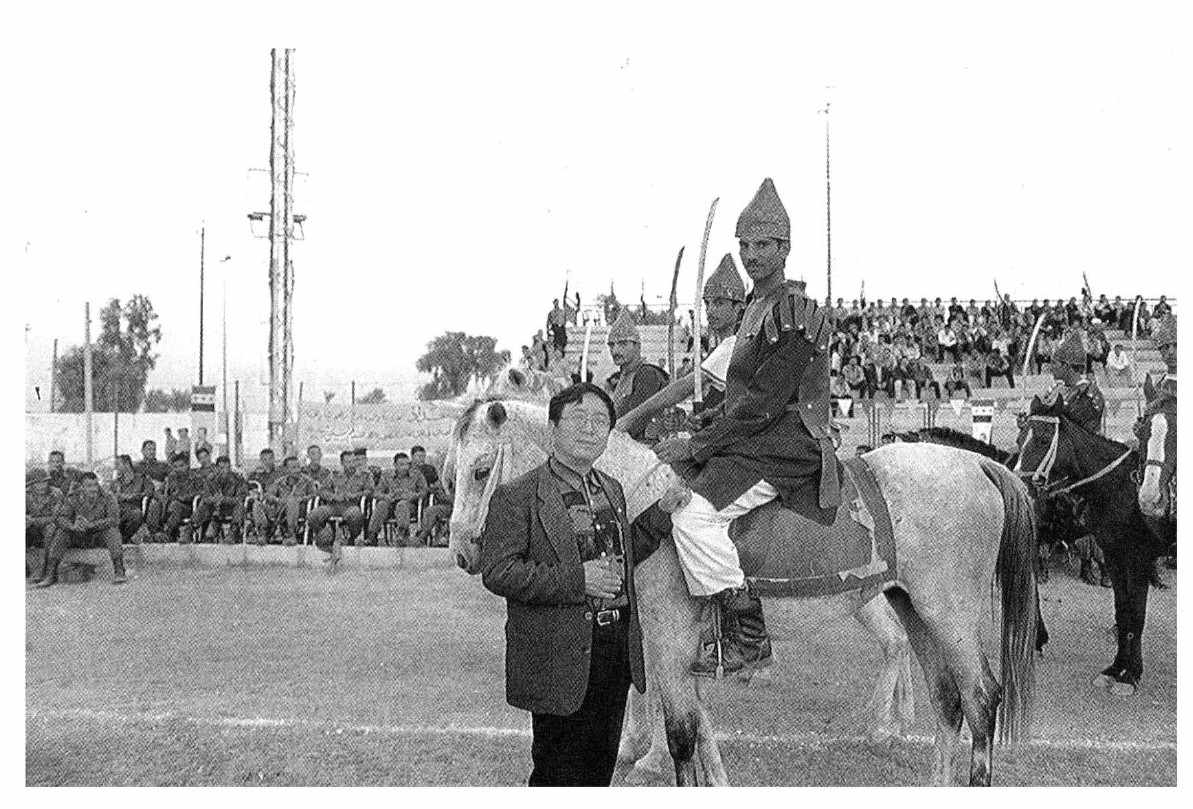 忽然看见主席台的贵宾席上有一位先生一边向我招手一边在一级级地往下挤,定睛一看,是中国驻伊拉克大使张维秋先生。张大使执意要我坐到贵宾席去,我则告诉他,在戒备森严的仪式中,我居然能在这么大的草地上自由自在地窜来窜去,求之不得。大使立即明白,笑了笑也就由我去了。