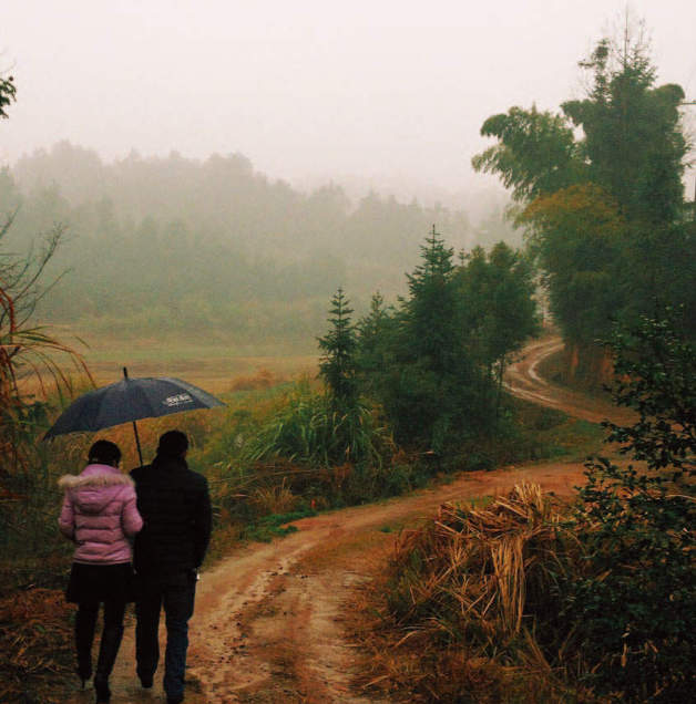 窗外密密整齐的雨水不知什么时候又落了下来。第二天叔叔开车去广东的丈母娘家拜年,山里雾气没有散,奶奶喊我:“伢子,起来吃饭,叔叔他们等下走了。”