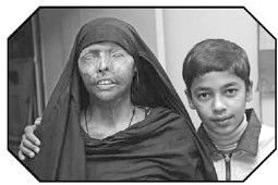 娜依玛·阿扎,巴基斯坦拉瓦尔品第的一名房地产经纪人,她的双眼被前夫用硫酸灼伤至盲,现在只得由12岁的儿子为她导盲。