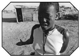 塔邦恐惧地站在她位于南非的小棚屋前。屋子里,母亲因患艾滋病而奄奄一息。