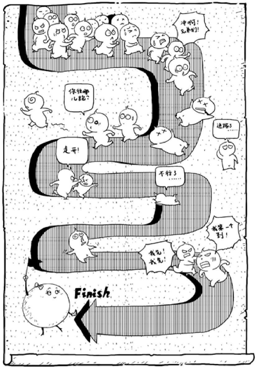 ▲ 男性每次射出的精子在数千万到两亿之间,但能和卵子结合的名额只有一个,从统计学意义上来说,每个精子的成功率几乎为零,它们在身体迷宫里左冲右突,奋力求生……然而笑到最后,有幸能和卵子结合的名额只有一个,很少会有两个,其他精子都将成为殉葬品。