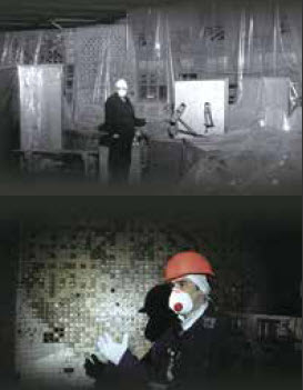 出30公里辐射圈的时候,有一个检查站。进去的每个人出来都要接受全身检查,包括携带的物品。管理方不希望有任何放射性的污染物被带出去。如果有超过辐射值的东西,包括人,都会被扣下做清洗。“洗澡”很昂贵,600美元。