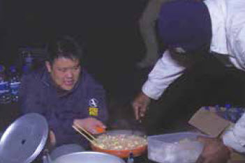 这几天,我一直担任炊事班长掌勺,带来的那个厨师,做了一顿我就让他下岗,转型当力工去了。他做饭太废水,我们的储备不够他折腾的,再加上一方习惯的原因,他做的东西,完全不对中国人口味。