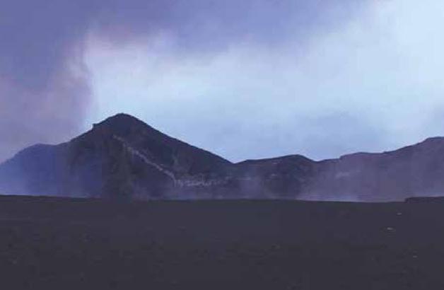 乔伊斯和厨师顶不住了,他们要下山住,台风过了再上来。乔伊斯劝我们也先下去,这样不行,太冒险了,风力如果继续加大的话,我们人都可能被吹进火山里面去。