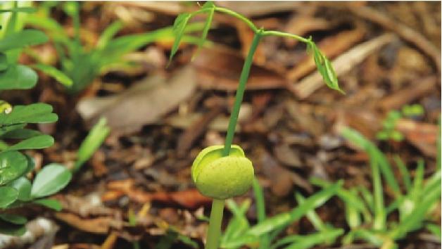 上岸,在山路旁,看到一株豌豆苗一样的小苗,那就是红木的幼苗,挺可爱的。迈尔斯说,这棵小苗需要经过几百年,才会长成玫瑰木——也就是我们所说的红木。