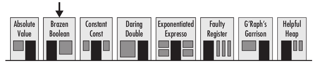 街上的下一个店面是Brazen Boolean,这是一间现代化的咖啡厅,拥有典型的布尔类型风格——鲜明的黑白两色。布尔市的居民素以狂热倾心于逻辑的绝对概念而闻名,在他们眼中,一切事物要么为真,要么为假。他们是很称职的目击者。作为镇上唯一的布尔咖啡厅,Brazen Boolean是那些背井离乡者的避风港。毕竟,在布尔人眼中只有两种人:布尔人和其他人。