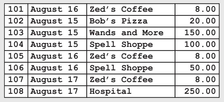 同样道理,如果你按照交易金额递增的顺序来排列账目,则可以快速找出所有价值为250美元的交易,但是这并不能帮助你找出特定的交易日期、交易号或交易者姓名。