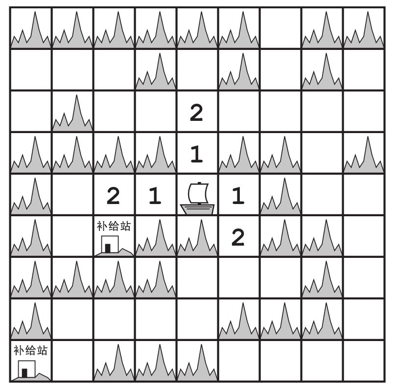 “幸运的是,我们找到了,”Mavis回复道,“那次搜索我们探索了所有距离为1、2和3的正方形。找到补给站时,完全不愿意喝无因咖啡的舵工已经将他的咖啡粉反复用了十次了。但更糟的是,大副已经开始唱‘甲板上的鼻涕虫’了,所幸,这首歌听起来其实还算欢乐。”