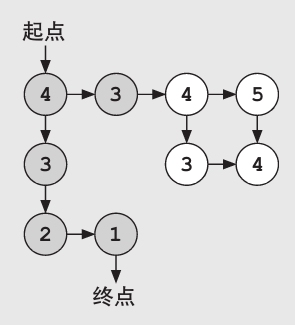 我们来看一个迷宫问题。现在我们已知起点和终点的坐标,可以在搜索空间中为每个点(状态)都设置一个值,这个值就可以是从该点到终点的距离,例如,可以使用曼哈顿距离——两点之间的垂直距离加上水平距离之和。虽然这个值不一定意味着当前点到目标点的实际步数,但它可以为最佳优先搜索算法提供更有效的选择依据。