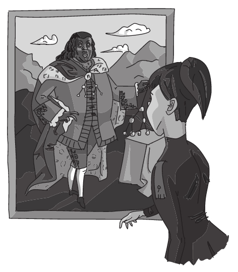 当Notation转身离开时,她的视线凝固在了挂在墙上的Fredrick国王的肖像上。她似乎陷入了沉思。