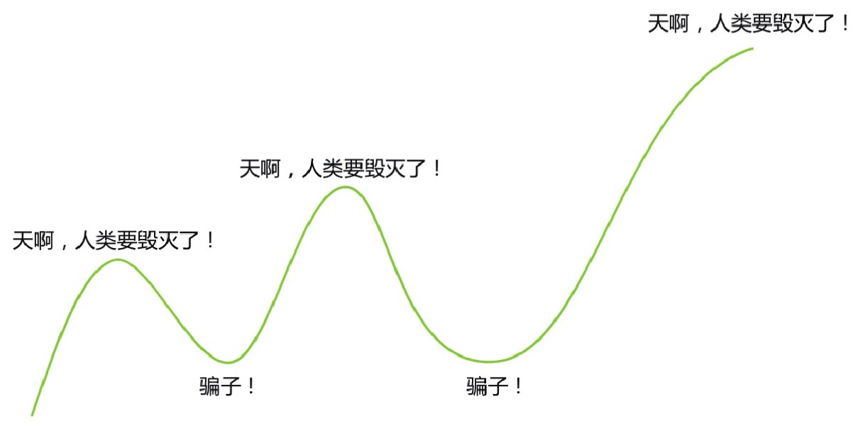 网上流传着一幅有关“人工智能发展成熟度曲线”的漫画,形象地展示出人们在此前两次人工智能热潮中,从被人工智能在某些领域的惊艳表现震撼,到逐渐认识到当时的人工智能还有各种局限,以至于产生巨大心理落差的有趣过程。