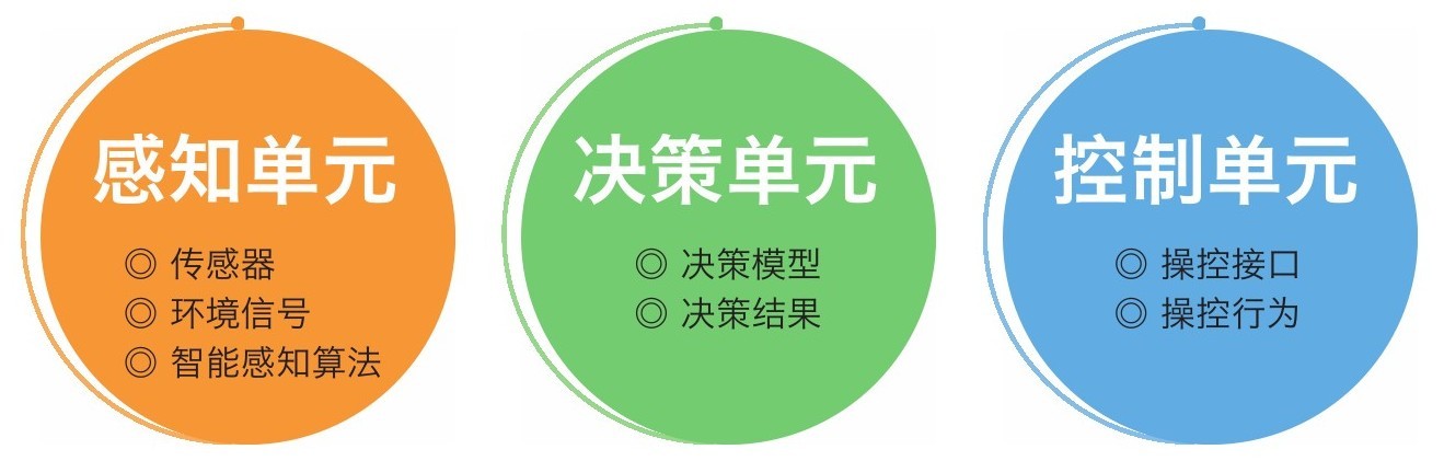 ·决策单元:主要由控制机械、控制电路或计算机软硬件系统组成,用于根据环境信息决定对交通工具施加何种操作。