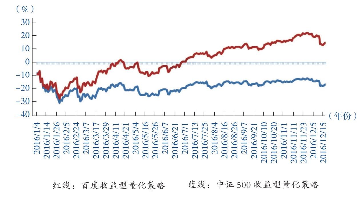 图7-3 百度收益型量化策略与中证500收益型量化策略的收益率对比