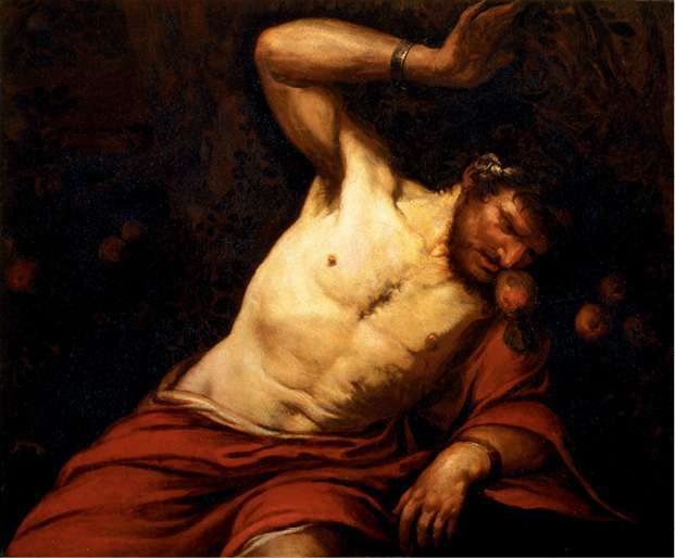 权力与性总是难解难分。起初,冲突的原因是权力。阿特柔斯的羊群中出现了一只宝贵的金绵羊,于是他趁机宣称:金绵羊是众神宠爱的证明,拥有金绵羊的人才能成为国王。梯厄斯忒斯不甘如此落败,立刻另辟蹊径,与阿特柔斯的妻子(曾是阿特柔斯的儿媳)阿厄罗佩通奸,通过爱神幽径窃取了金绵羊。阿特柔斯赔了夫人又折羊,仰天呼唤正义。宙斯或阿波罗改变了太阳运行方向以示声援。就这样,阿特柔斯当选国王,梯厄斯忒斯被放逐,其女儿佩洛皮亚被送至西库翁的国王忒斯普罗托斯家中抚养。有的神话说梯厄斯忒斯临行前偷走了阿特柔斯的儿子普勒斯忒涅斯,抚养成人后,派他刺杀亲生父亲阿特柔斯,却反而被杀。但普勒斯忒涅斯有时又被说成是阿厄罗佩的丈夫,而且梯厄斯忒斯似乎也有个同名的儿子,逻辑混乱,可见希腊诗人和悲剧作家没来得及统一说法。但可以肯定的是,阿特柔斯为了报复兄弟梯厄斯忒斯,假意和解,请他回来赴宴,按照祖传私房菜谱,杀死梯厄斯忒斯的两个儿子普勒斯忒涅斯和坦塔罗斯(重名)并煮熟奉上,将孩子们的头和手拿给梯厄斯忒斯看。梯厄斯忒斯疯狂地逃跑。阿特柔斯还把妻子阿厄罗佩推进了大海。