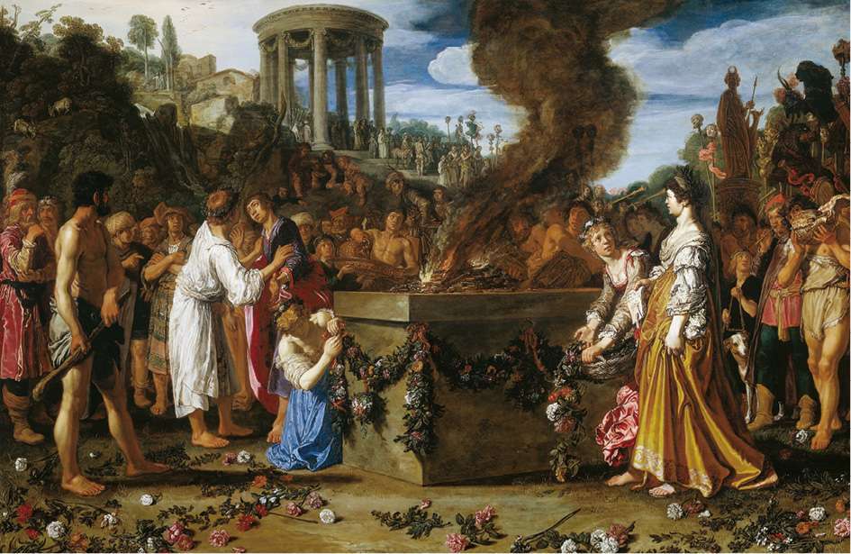 伊菲革涅亚十分感动:“我真希望我有这样的弟弟。那么就让皮拉得斯代替你去送信吧。你将留在这里成为祭品,我会像你的姐姐一样为你熄灭火葬堆的灰烬,用蜜和香油献祭,并装饰你的坟墓。”说完回到内室写信。