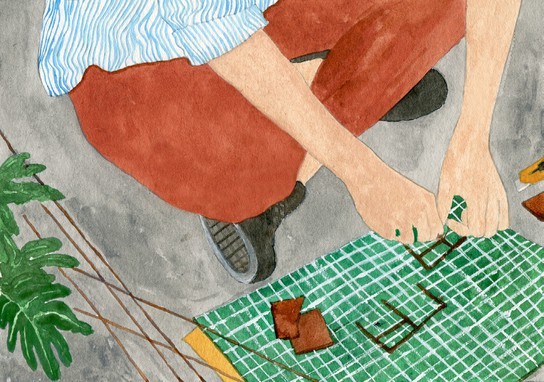“如果真的那么不想吃外面的东西的话,”C用铅笔沿着尺子在白色的雪弗板上画线,这时候他停下来,“我会做饭的。”