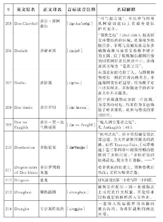 Nargothrond:译为“纳国斯隆德”(而非“纳戈斯隆德”),更为美观,又取“国”的“国度”含义。
