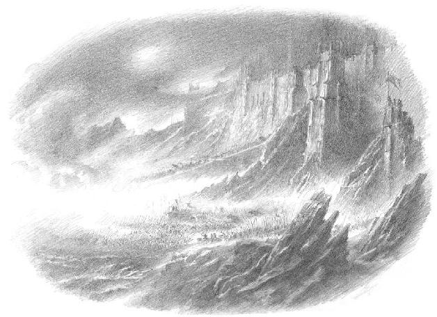 我接下来给出《蕾希安之歌》的另一个选段(见第91页和第93页),这段讲述的故事,就是刚刚引述的《诺多史》里那段十分简略的情节。我从日后称为“骤火之战”的大战爆发,安格班合围就此结束的地方开始摘录这首诗。根据家父写在手稿上的日期,这一整段都是在1928年3月至4月期间写成的。《蕾希安之歌》的第六歌结束于第246行,接着开始第七歌。