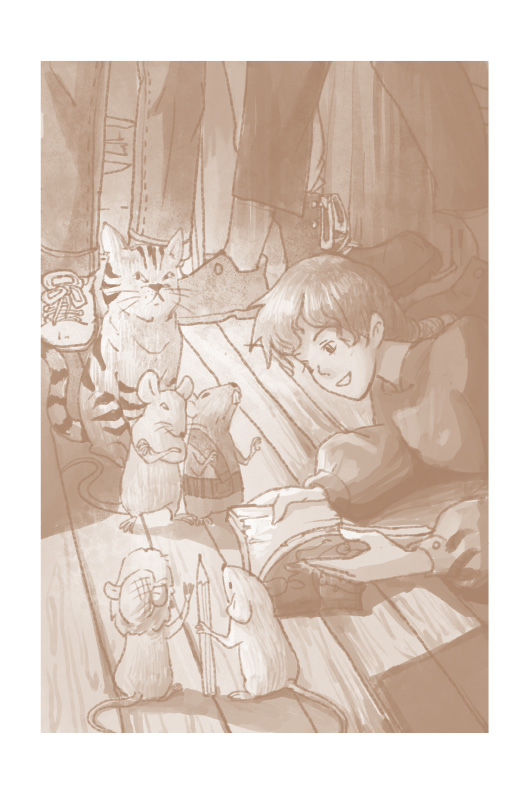 但既然这是真实的生活,就得需要契约。一场自从人类开始在屋内居住后就开始的战争不可能仅凭一个快乐的微笑便结束了。得成立委员会,有那么多的细节要讨论。市议员们在讨论,还有大部分高级别的老鼠。莫里斯在桌上走来走去地掺和着。