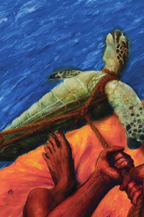 我每天进行根据现在的情况而改变的宗教仪式——没有牧师也没有圣餐主持的一个人的弥撒,没有神像的得福仪式,用海龟肉做惠赐的礼拜,向安拉祈祷却不知道麦加在哪里,阿拉伯文也说错了。这些给了我安慰,这是肯定的。但是这很难,噢,真的很难。信仰上帝就是敞开心胸,就是不受拘束,就是深深的信任,就是爱的自由行动——但有时候要去爱太难了。有时候我的心因为愤怒、忧伤和疲惫迅速地沉下去,我真担心它会一直沉到太平洋底,我没有办法再把它提起来了。