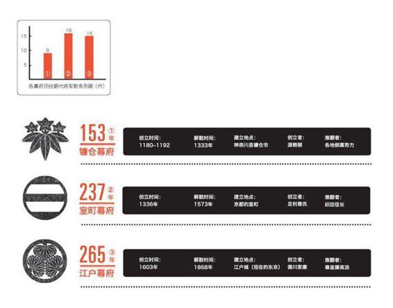 幕府是古时日本一种权力一度凌驾于天皇之上的中央政府机构。常以“挟天子以令诸侯”的方式来对国家进行统治,其最高权力者为征夷大将军,亦称幕府将军。日本历史上共经历了镰仓幕府、室町幕府、江户幕府三个幕府历史时期。始于1185 年终于1867 年,共682 年,幕府本指将领的军帐,但在日本的特殊状况下,演变成一种特殊国情的政治体制。