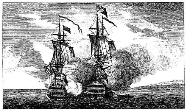 “金鹿”号攻击西班牙宝藏船。(康威)