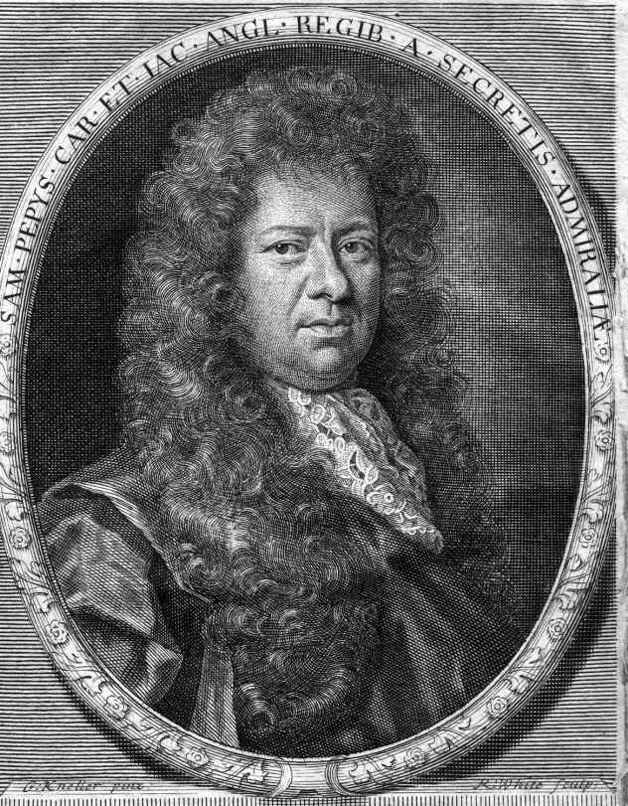 塞缪尔·佩皮斯,根据戈弗雷·内勒(GodfreyKneller)爵士1689年的绘画雕刻而成。1689年,佩皮斯离开他的书记官职位,进入了海军部委员会。(康威)