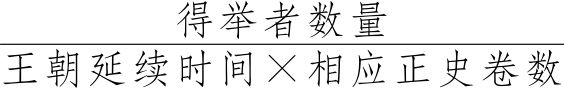 为了对见于吏传之秀孝的数量变化有一较为直观简明的印象,下面将曹魏、两晋及南朝各代之秀孝规模变化化为指数,列表以为辅助说明。由于各王朝持续时间长短不一,各代史书篇幅亦简繁大异,这里所采用的统计方法是,将各代之秀孝见于“正史”者,除以王朝之持续时间,及相应“正史”之卷数,即: