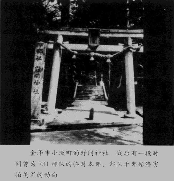 战争结束后的1945年8月19日那天,数名身着军队文职人员制服的人来到坐落在金泽市小坂町东一番地的野间神社。他们对出面接待的宫司(神社的最高神官)说道:“我们是撤退到舞鹤港的陆军部队的人员,来到金泽市后,找不到住处,十分困难。我们带着大量的粮食等,不会给你们增添麻烦,只想借责神社的一角暂住,请帮个忙吧!”