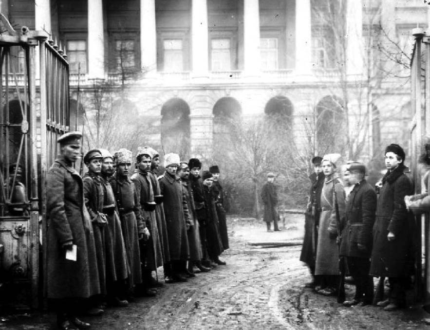 从这两张老照片不难看出,赤卫队人员组成都很复杂,不但有工人、市民,还有沙俄军队的军官、士兵和水兵,甚至还有显然未成年的少年,所持武器也五花八门。